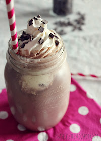 - Die Eiskakao mit Schlagsahne und Schokostreuseln garnieren.